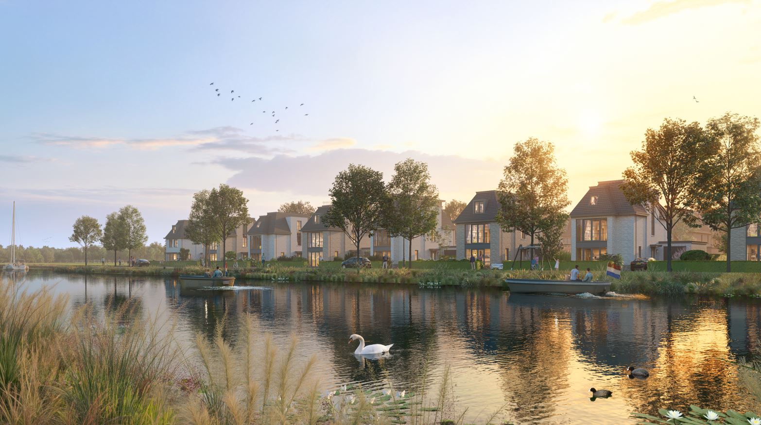 Vlietoevers ligt direct aan het boezemwater van de Vliet en is geïnspireerd op de historische polderverkaveling.